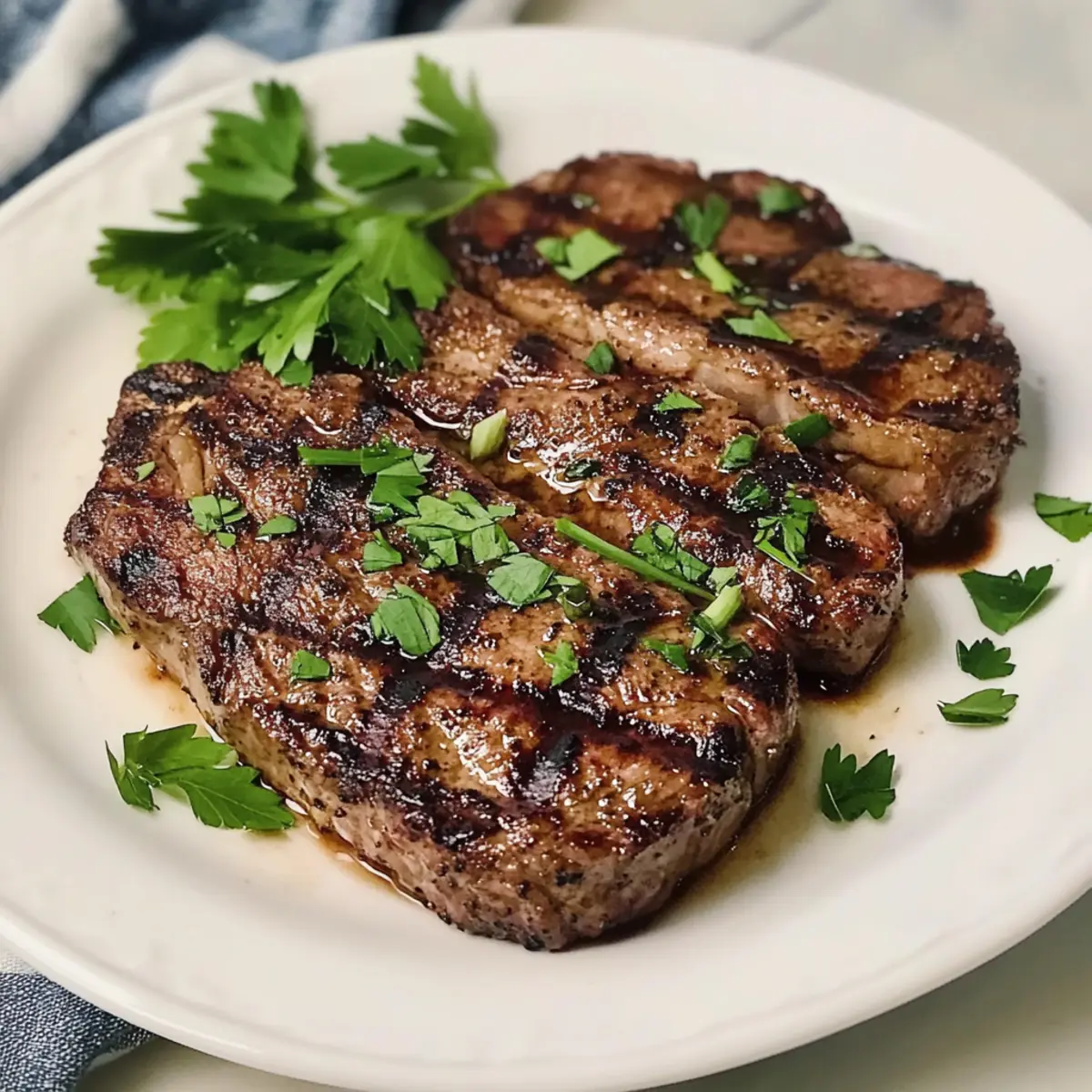 Nach dem Grillen die Steaks auf einen Teller legen und sie für 5-10 Minuten ruhen lassen. Dies ermöglicht es den Säften, sich im Fleisch zu setzen, was zu saftigen und zarten Steaks führt. Für eine schönere Präsentation kannst du sie vor dem Servieren mit frischer Petersilie oder Frühlingszwiebeln garnieren.