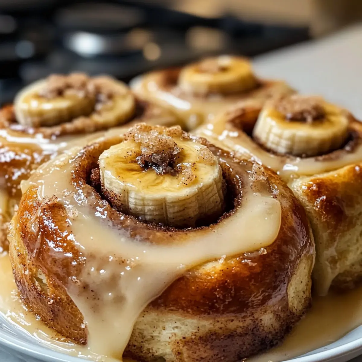 Bananenbrot Zimtschnecken mit Frischkäseglasur