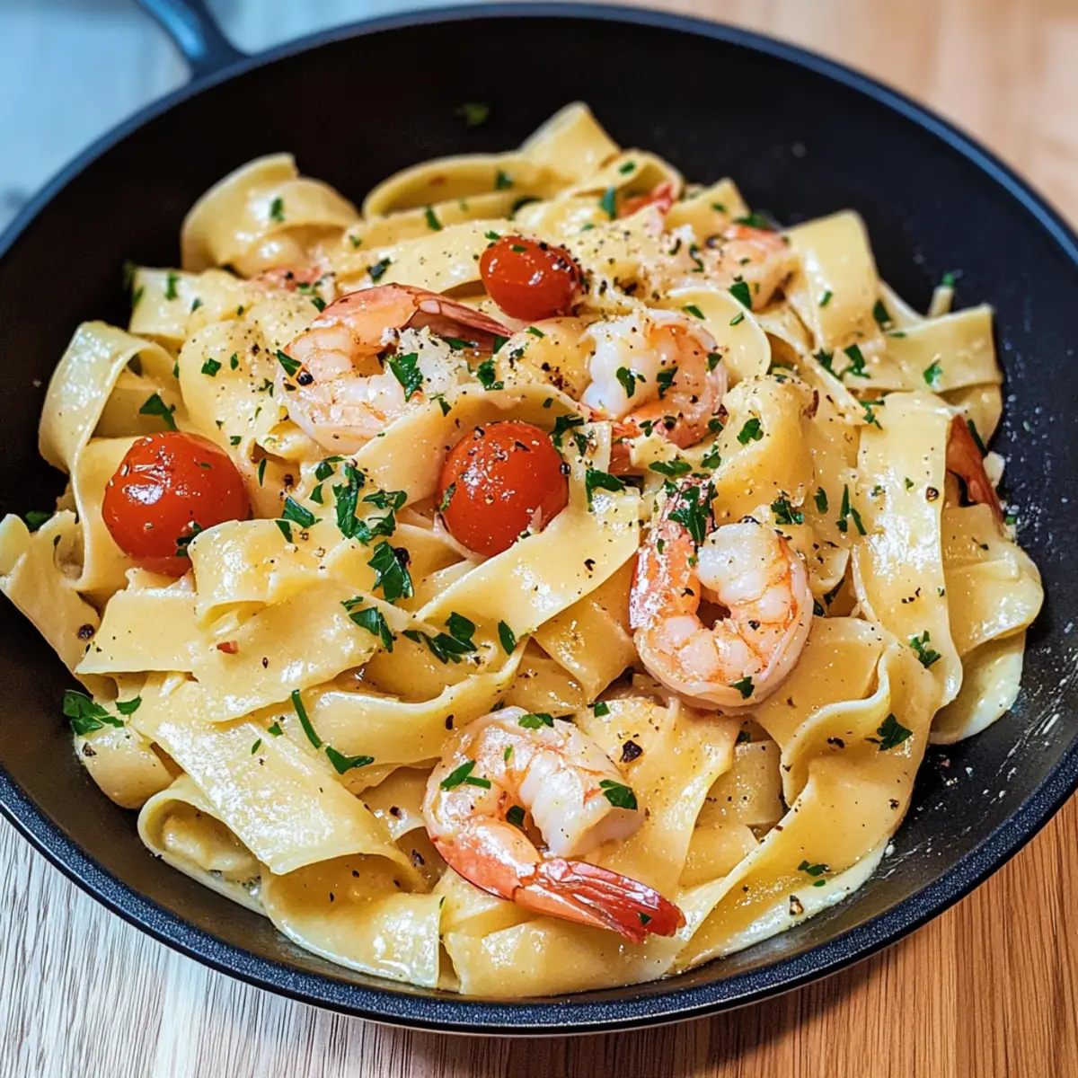Cremige Pappardelle-Pasta mit Garnelen zaubern