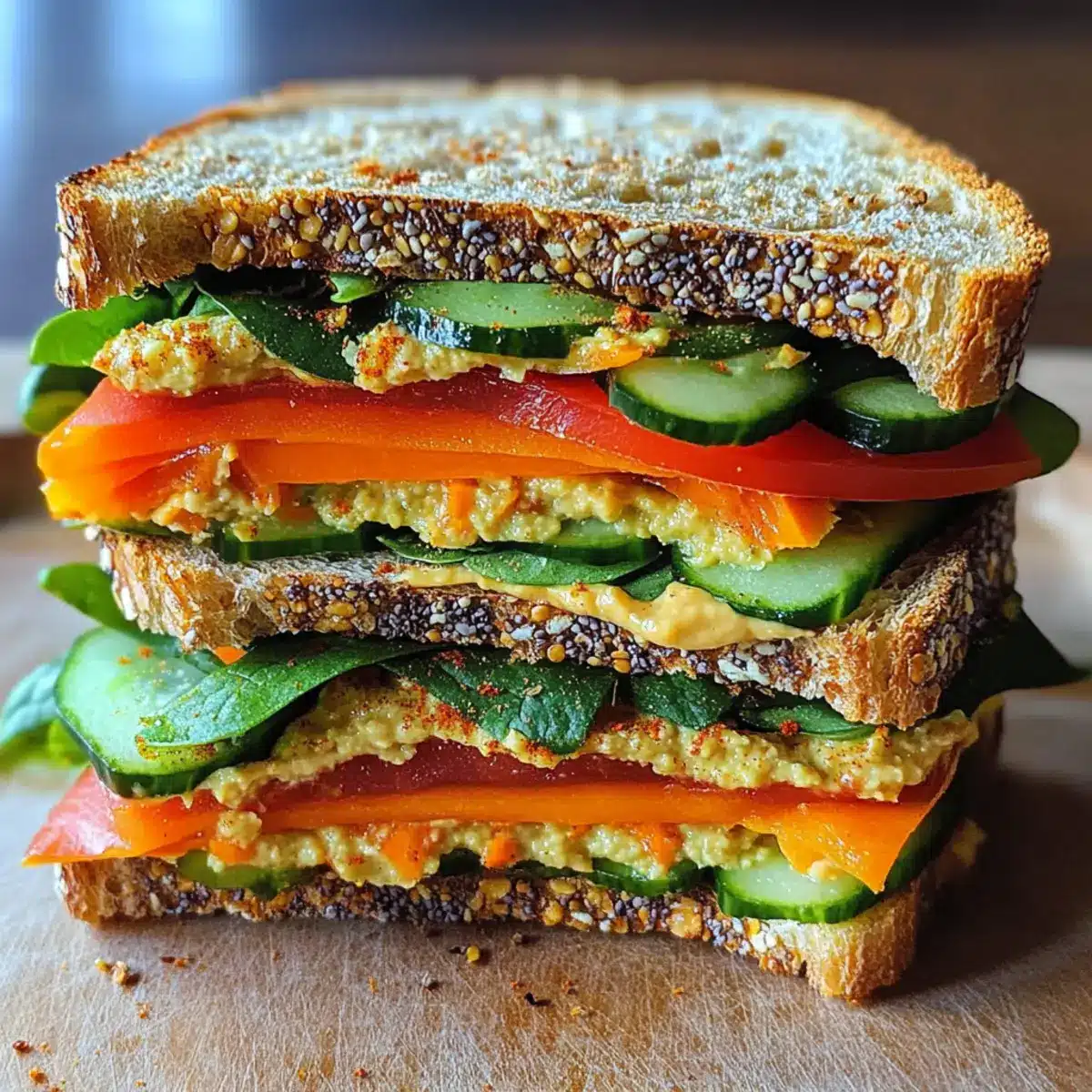 Leckeres Gemüse- und Hummus-Sandwich für jeden Tag