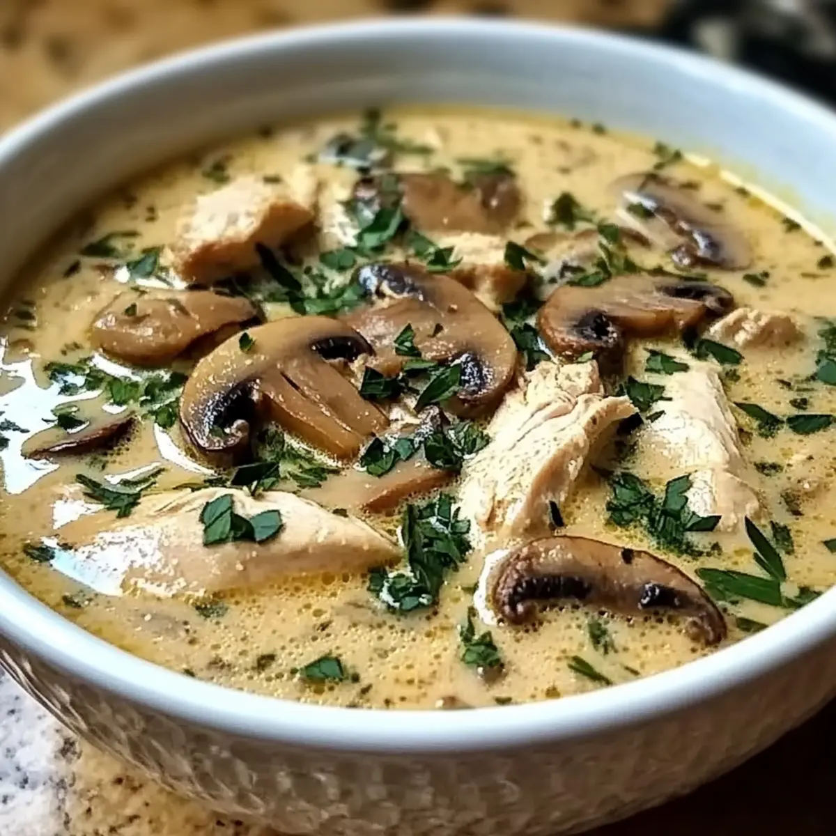 Cremige Rotisserie-Hühnchen-Pilzsuppe im Handumdrehen