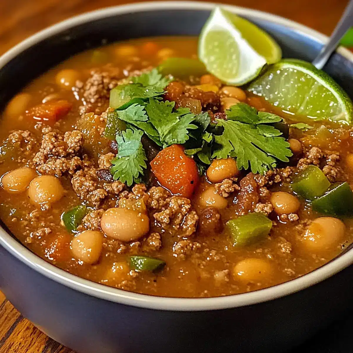 Pinto-Bohnen, grüne Chile und Rindfleischsuppe für jeden Tag