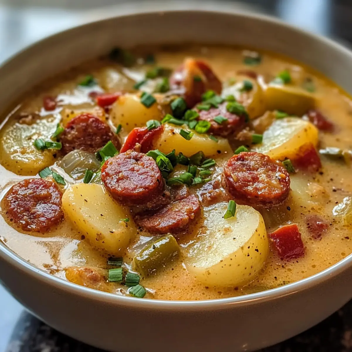 Cremige Cajun Kartoffelsuppe mit Andouille-Wurst
