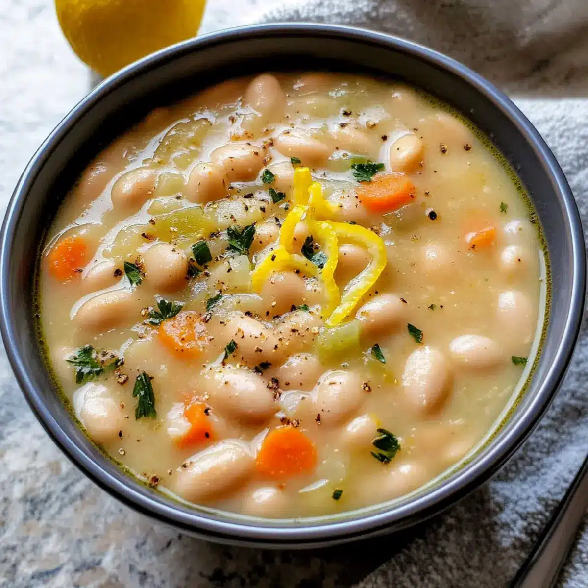 Leckere Weißbohnensuppe mit Knoblauch und Zitrone