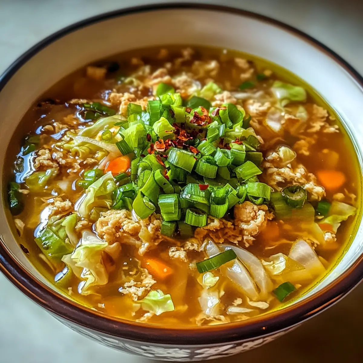 - Vegane Version: Ersetzen Sie das Hackfleisch durch Tofu und die Brühe durch Gemüsebrühe. So wird die Suppe nicht nur vegan, sondern behält auch ihren herzhaften Charakter.
