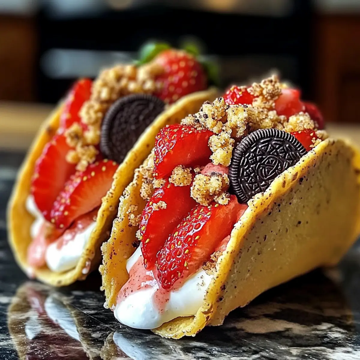 Kreativität und Spaß in einem: Diese Tacos bringen die Freude am Essen zurück! Mit einer knusprigen Hülle und einer cremigen Füllung sind sie nicht nur ein Augenschmaus, sondern auch ein Geschmackserlebnis. Flexibel in der Zubereitung – tauscht die Erdbeeren gegen eure Lieblingsfrüchte aus oder experimentiert mit verschiedenen Keksvariationen. Schnell zubereitet, perfekt für spontane Gäste, und gefallen garantiert jedem! Probiert sie auch mit einer Zucchini Linsen Suppe oder einem Herzhafter Suedlaendischer Vegetarischer Gericht als Beilage. Schafft unvergessliche Momente mit diesen leckeren Tacos!