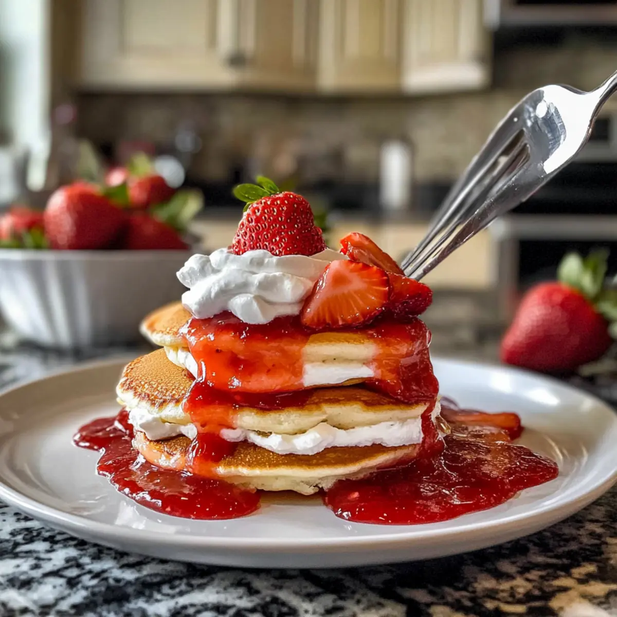 Erdbeer-Käsekuchen-Pfannkuchen für ein festliches Frühstück