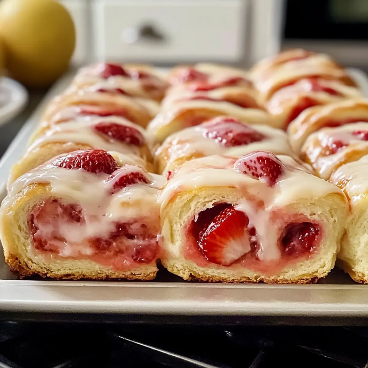 Erdbeerröllchen mit Frischkäseglasur für deinen Frühstücksgenuss