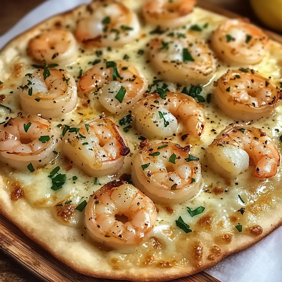 Die Zubereitung des Garnelen Scampi Fladenbrots ist ein wahrer Zeitgewinn für vielbeschäftigte Köche! Ihr könnt die Garnelen bis zu 24 Stunden im Voraus marinieren, indem ihr sie mit dem Knoblauch und Zitronensaft vermischt und in einem luftdichten Behälter im Kühlschrank aufbewahrt – so bleiben sie frisch und aromatisch. Das Fladenbrot kann ebenfalls im Voraus gebacken und in Folie eingewickelt bis zu 3 Tage festgehalten werden. Wenn es dann Zeit zum Servieren ist, einfach die vorbereitete Garnelenmischung gleichmäßig auf dem Fladenbrot verteilen und im vorgeheizten Ofen für etwa 8-10 Minuten backen, bis das Fladenbrot knusprig ist. Dieser praktische Ansatz sorgt dafür, dass ihr immer ein köstliches Gericht auf dem Tisch habt, ohne dabei viel Zeit zu verlieren!