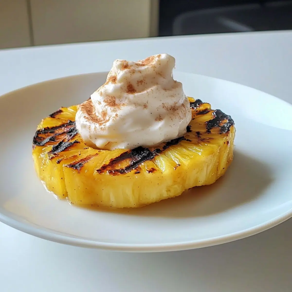 Sobald die Ananas fertig gegrillt ist, nimm sie vom Grill und lasse sie kurz abkühlen. Serviere die gegrillte Ananas warm, indem du eine großzügige Portion der Kokosnuss-Zimt-Schlagsahne darauf gibst. Die Kombination aus warmem, saftigem Obst und der luftigen Sahne sorgt für ein unvergessliches Geschmackserlebnis – perfekt für jeden Anlass!