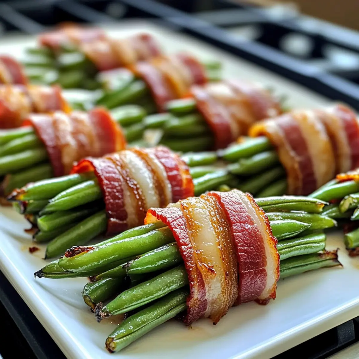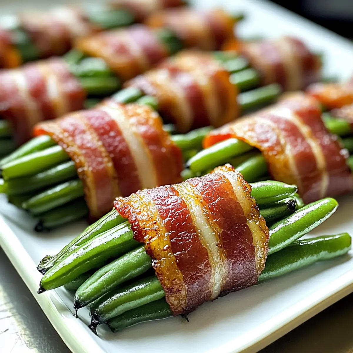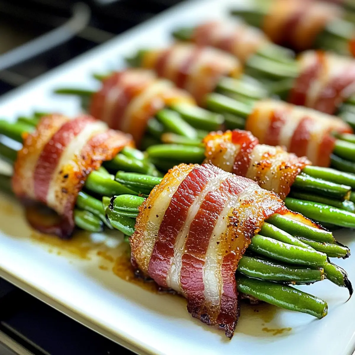 Die Grüne Bohnen Bundles sind perfekt für die Meal Prep geeignet! Du kannst die Bündel bis zu 24 Stunden im Voraus vorbereiten, indem du die gewürzten grünen Bohnen mit dem Speck umwickelst und sie abgedeckt im Kühlschrank aufbewahrst. Dies hält die Bohnen frisch und verhindert, dass der Speck weich wird. Wenn du bereit bist, sie zu servieren, lege die gebauten Bündel auf ein Backblech und backe sie für 15–20 Minuten bei 200 °C, bis der Speck knusprig ist. So hast du im Handumdrehen eine elegante und köstliche Beilage, ohne den Stress der letzten Minute! Indem du diese Schritte voraussehen, sparst du wertvolle Zeit während hektischer Wochentage, während die Bundles einfach genauso lecker bleiben.