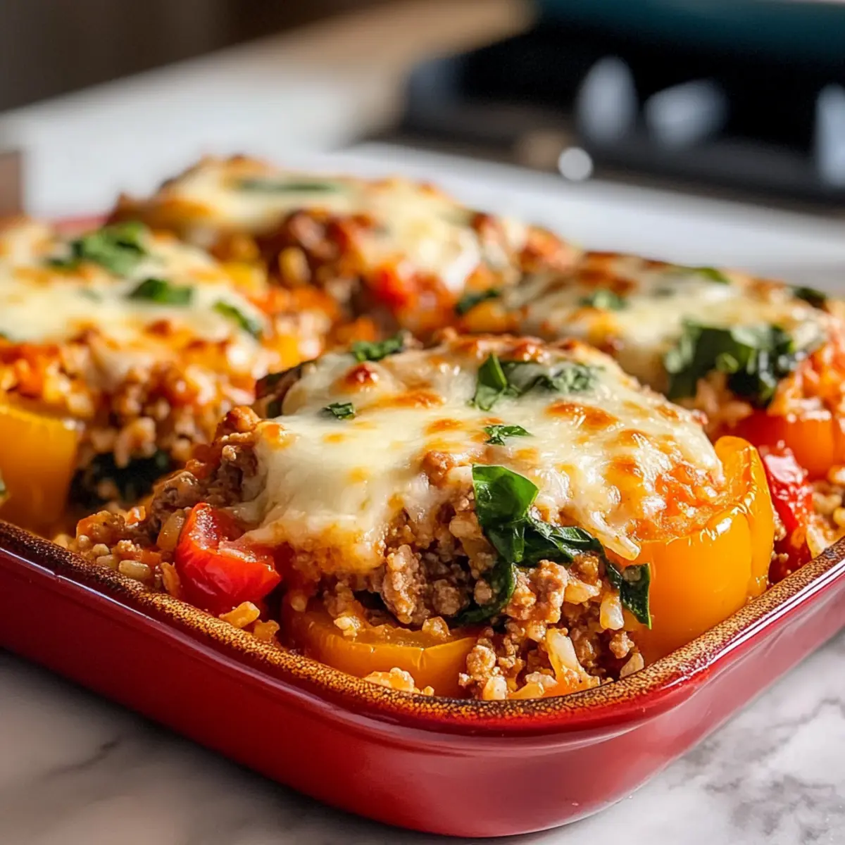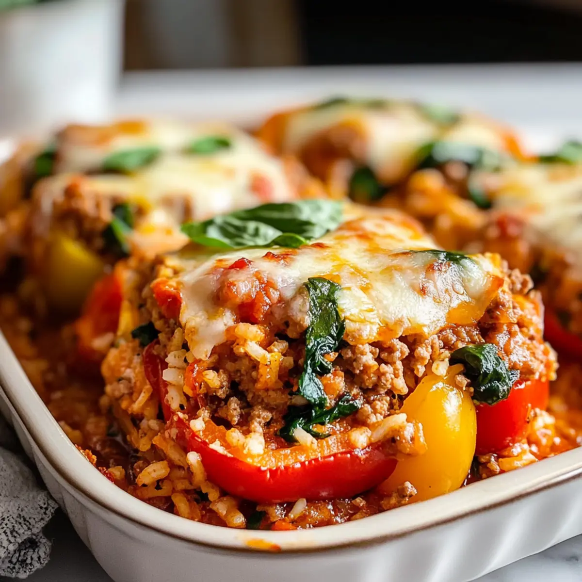 Lass den Auflauf nach dem Backen 2-3 Minuten ruhen, damit die Aromen sich setzen können. Garniere ihn vor dem Servieren mit frischer Petersilie. Nun genieße deinen hausgemachten gefüllten Paprika-Auflauf mit gemahlenem Truthahn in vollen Zügen!