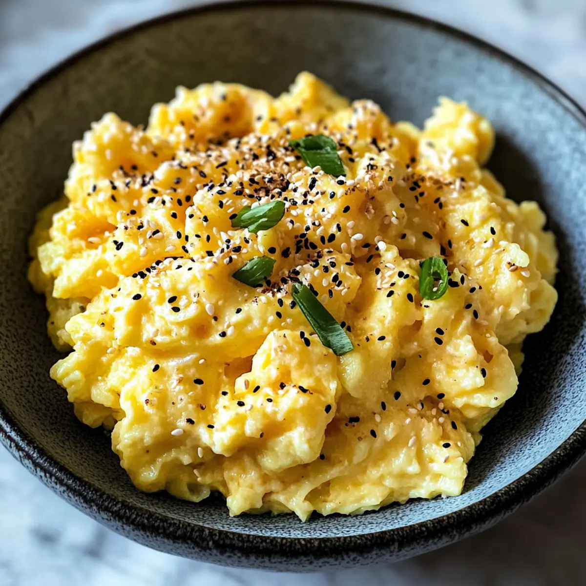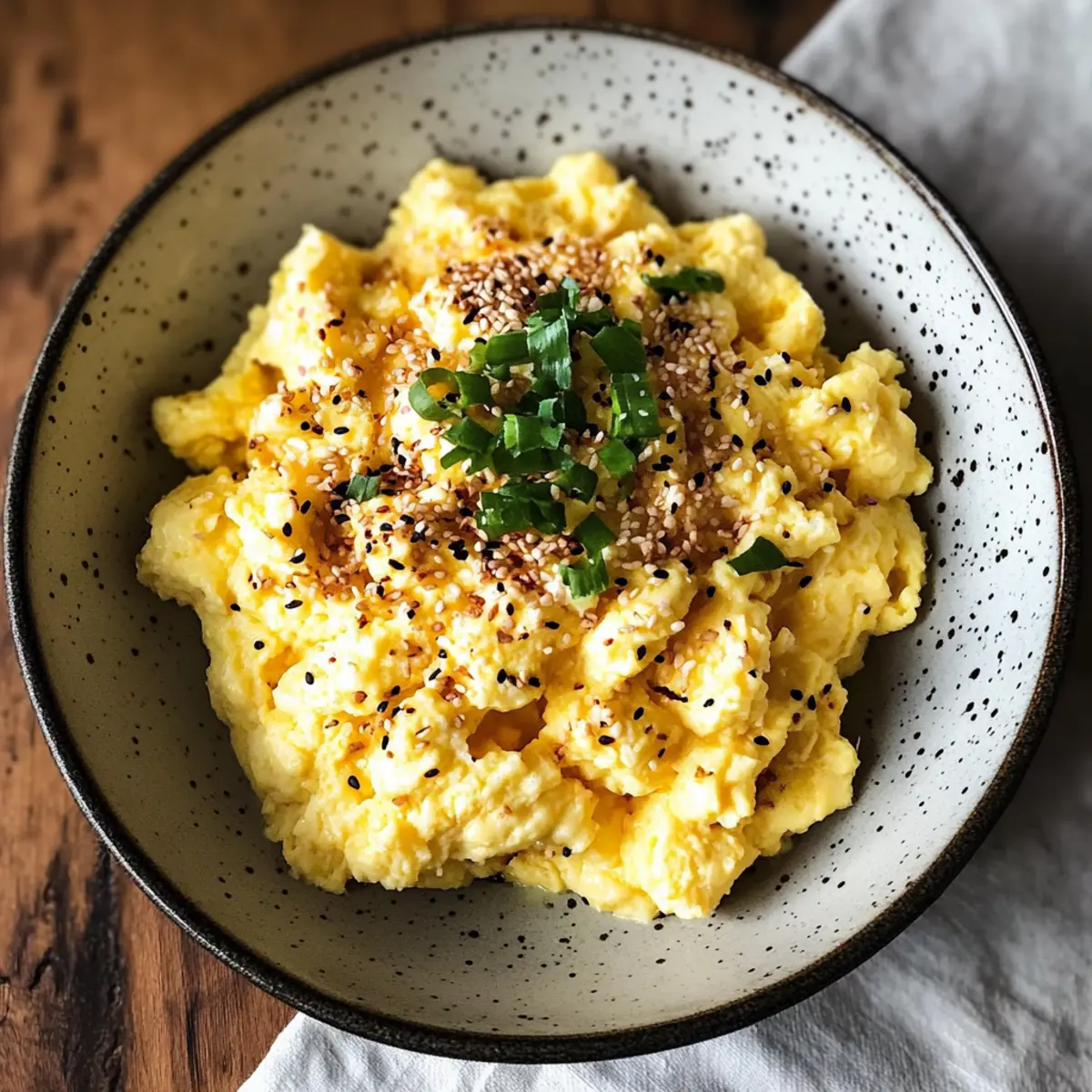 Vielfalt des Geschmacks: Diese Rühreier sind nicht einfach nur Eier – die Kombination aus dem umami-reichen weißen Miso und leicht geröstetem Sesamöl bringt einen völlig neuen Geschmack in dein Frühstück.