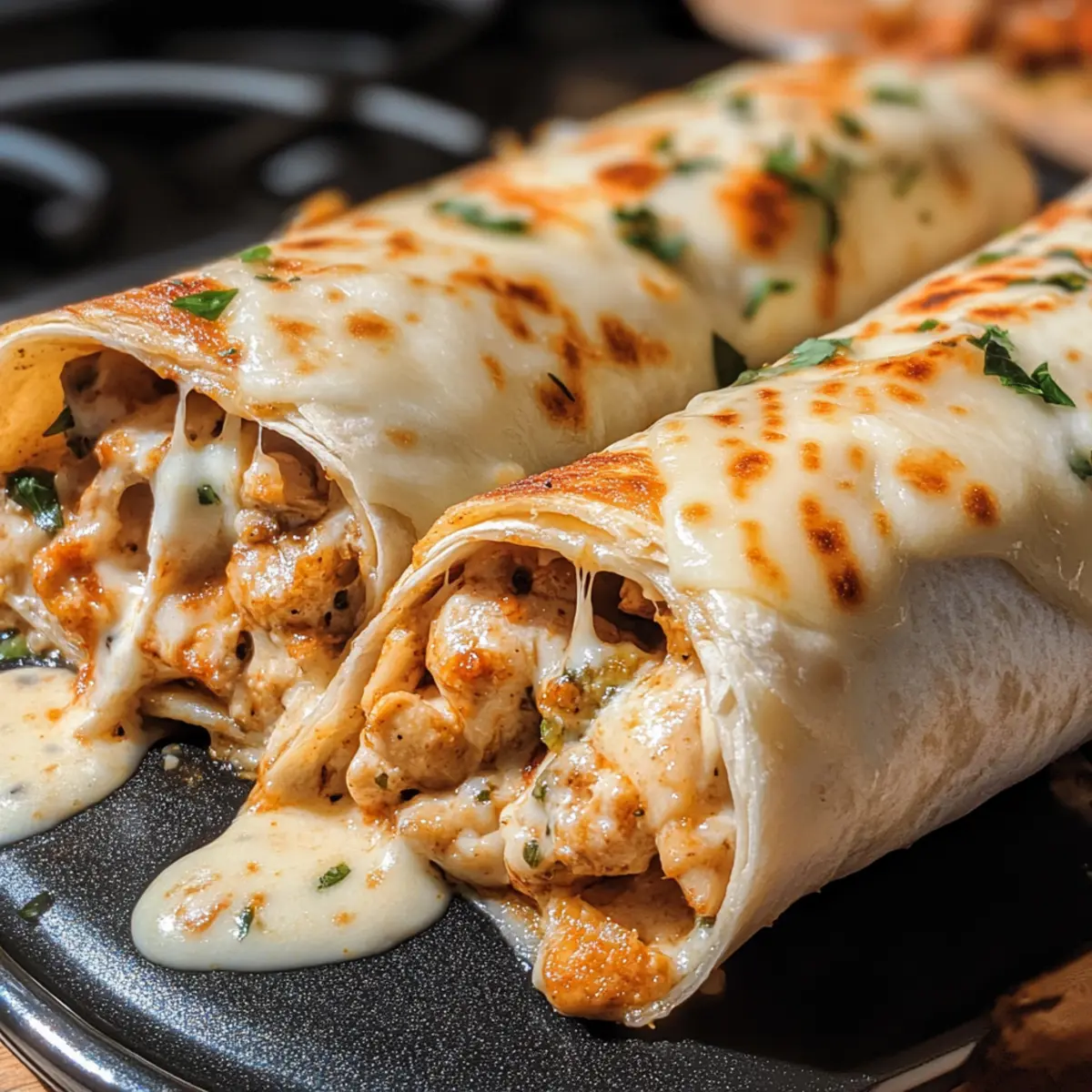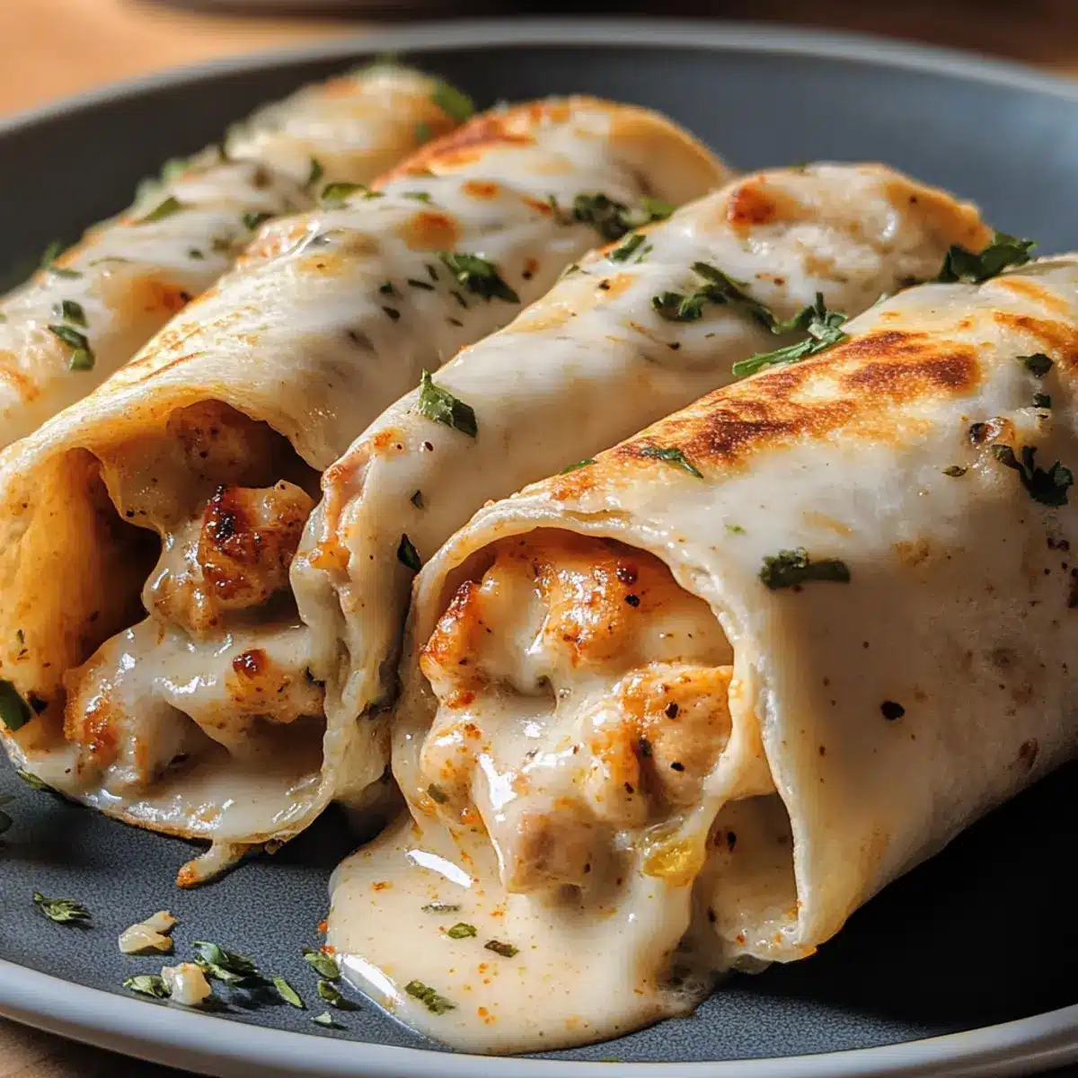 Käse Knoblauch Hähnchen Wraps in 25 Minuten