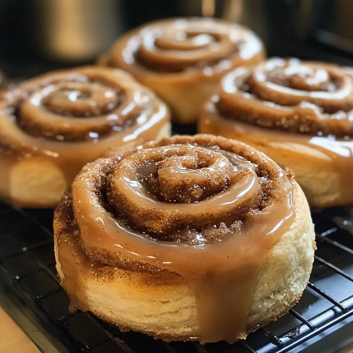 - Gieße die warme Glasur großzügig über die heißen Rollen. Lass sie kurze Zeit abkühlen und serviere sie dann sofort.