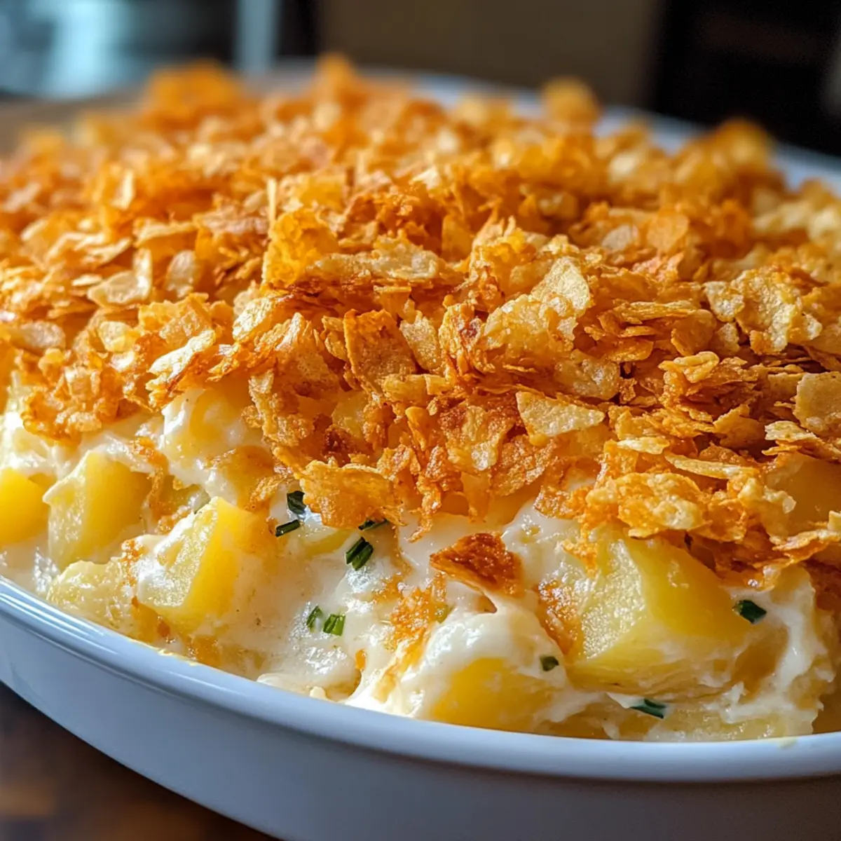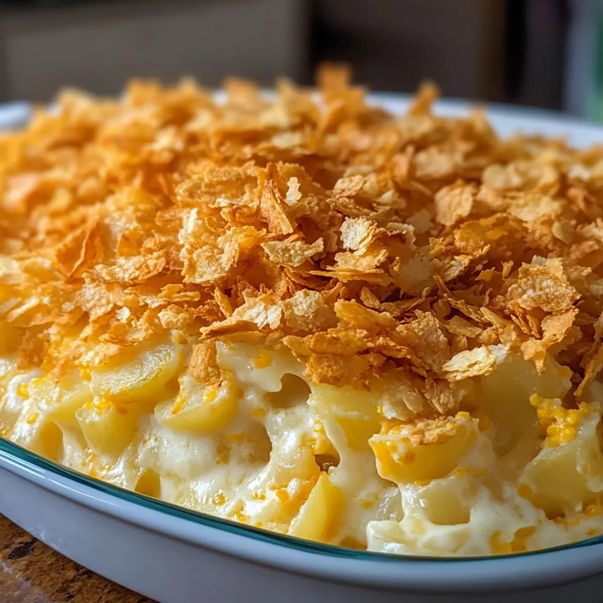 Perfekte Textur: Die knusprige Cornflake-Kruste auf der cremigen Kartoffelbasis sorgt für ein befriedigendes Mundgefühl bei jedem Bissen.