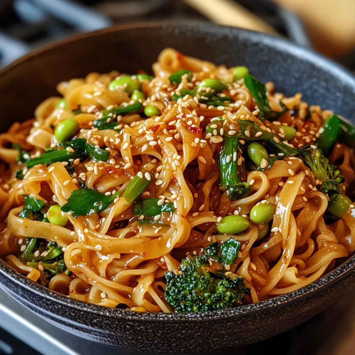 Nährstoffreich: Mit einer Fülle von Gemüse und pflanzlichem Eiweiß, wie Edamame, sind diese Nudeln nicht nur lecker, sondern auch gesund.