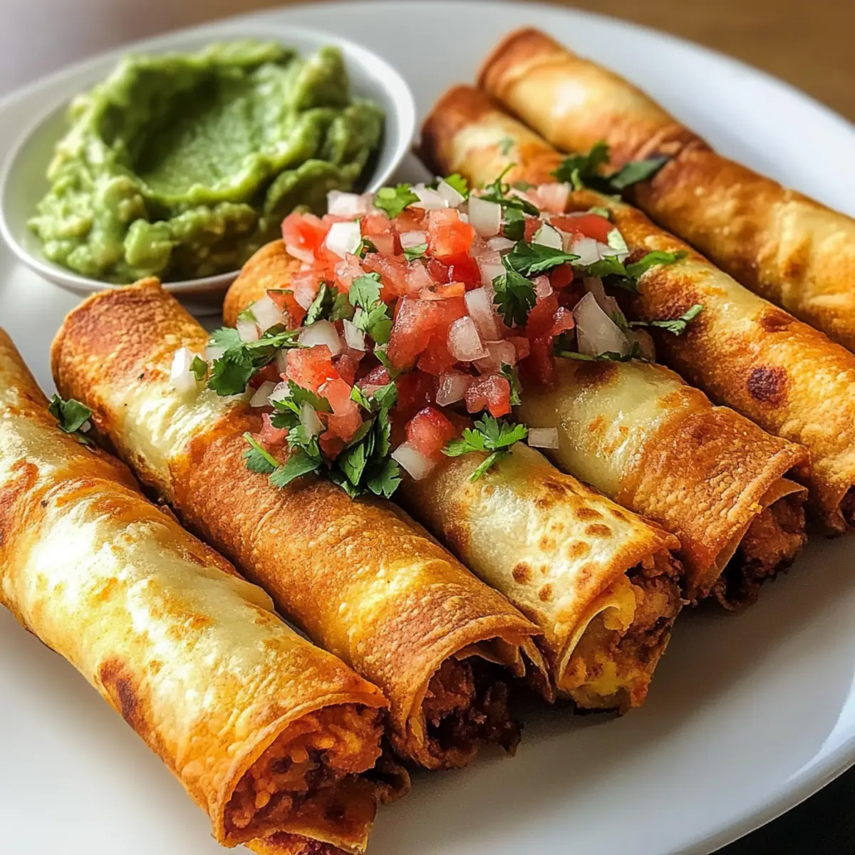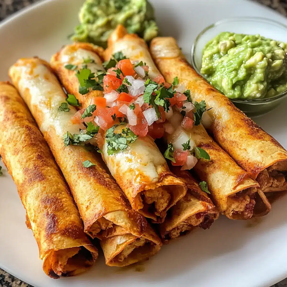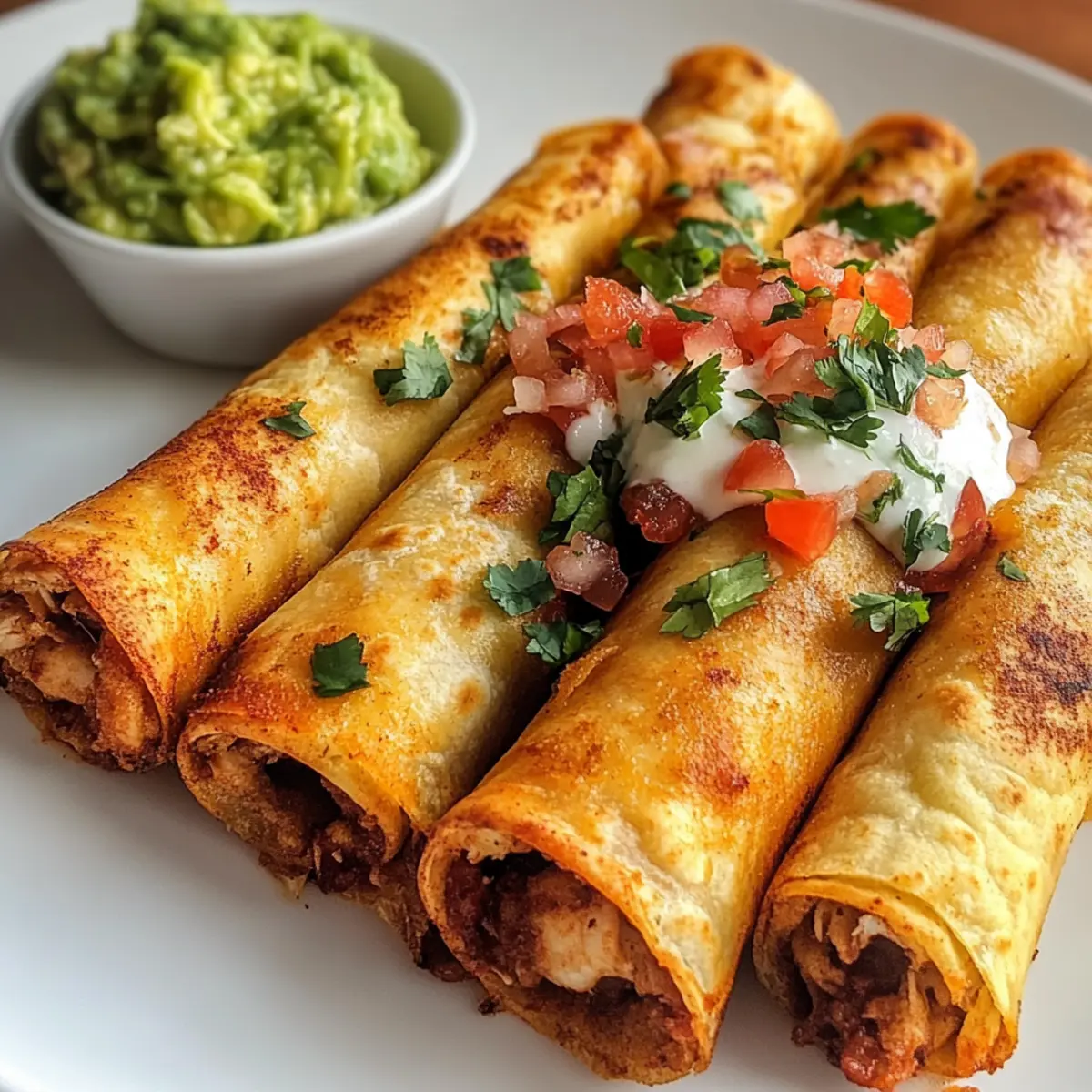 - Servieren Sie die Knusprigen Hühnchen Taquitos sofort und garnieren Sie sie mit Ihren bevorzugten Beilagen.