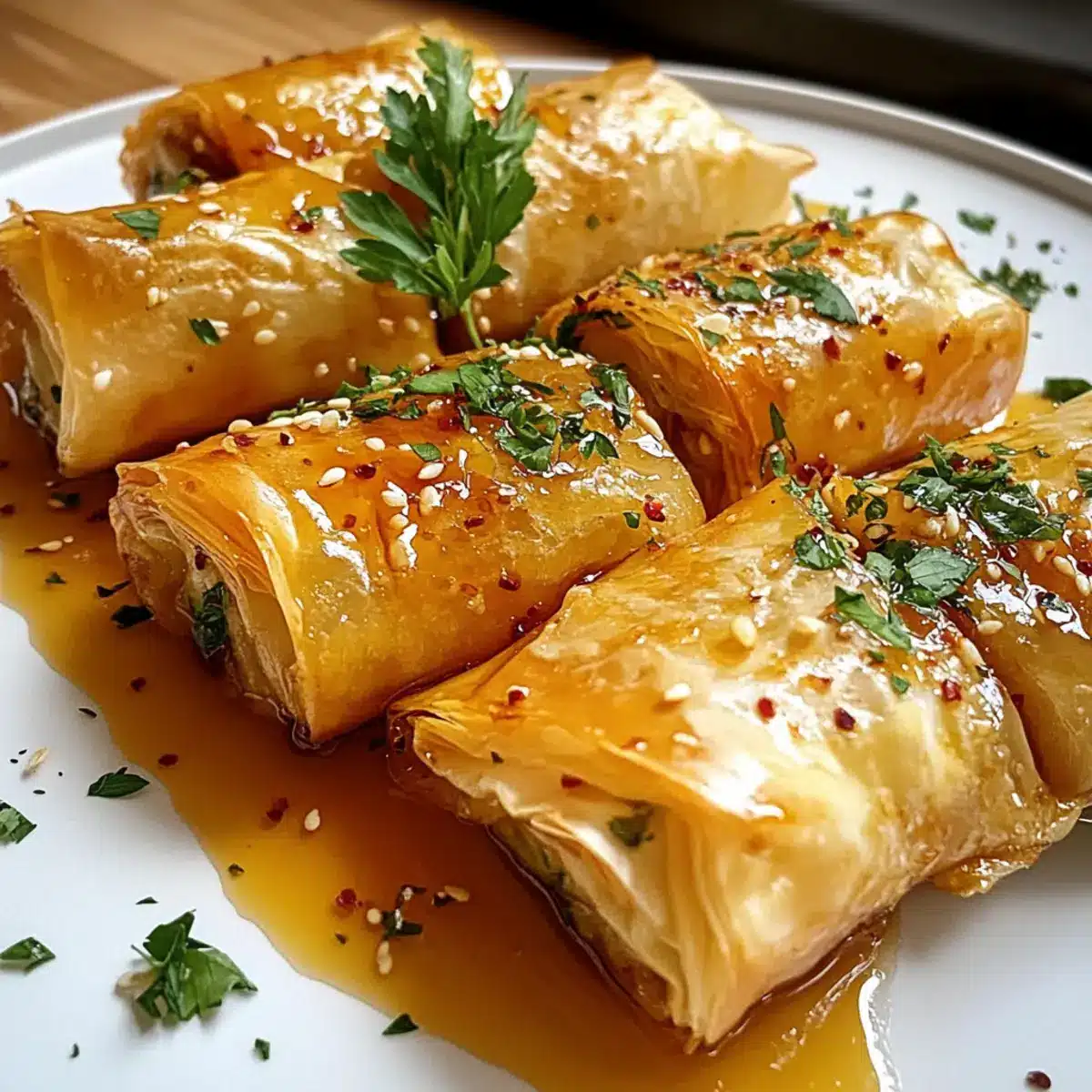 Knusprige Texturen: Die Kombination aus der leichten Phyllo-Hülle und dem cremigen Feta sorgt für ein wunderbares Geschmackserlebnis.