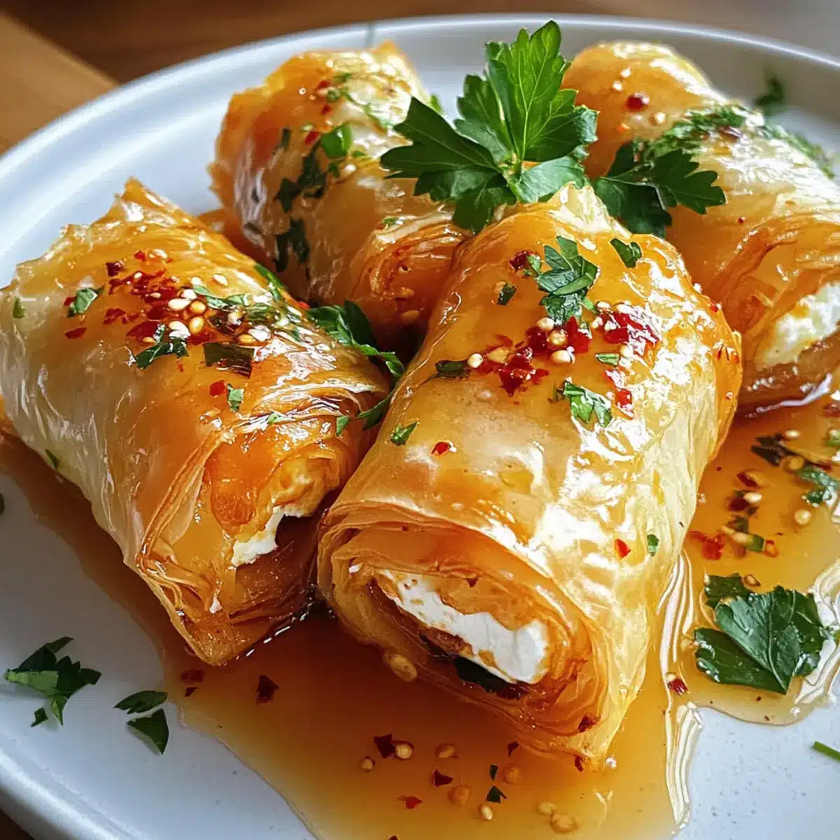 Mit diesen Zutaten zauberst du köstliche Ofen gebratene Feta-Rollen mit Chili-Honig, die deine Gäste beeindrucken werden!
