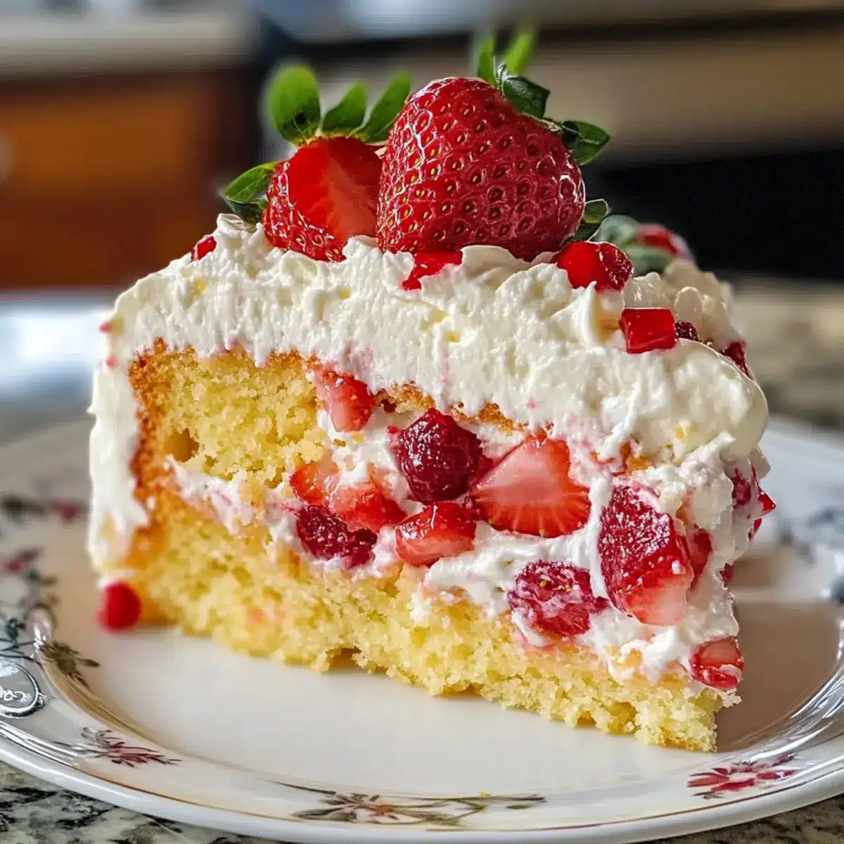Perfekte Präsentation: Mit frischen Erdbeeren und einem Hauch von Schlagsahne ist dieser Kuchen ein echter Hingucker auf jeder Festtafel.