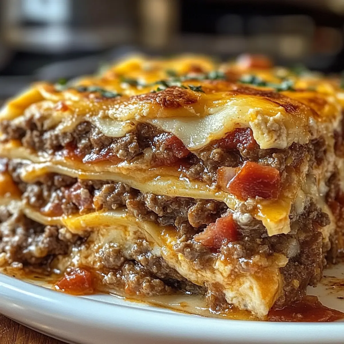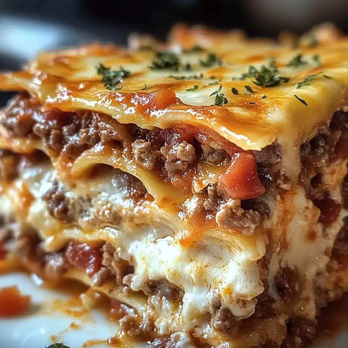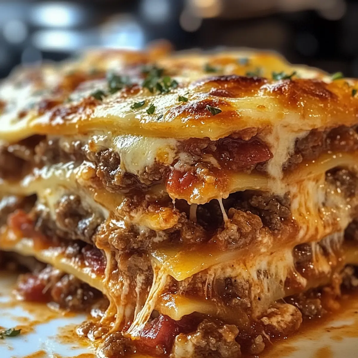 Parmesan Knoblauch Speck Cheeseburger Lasagne genießen