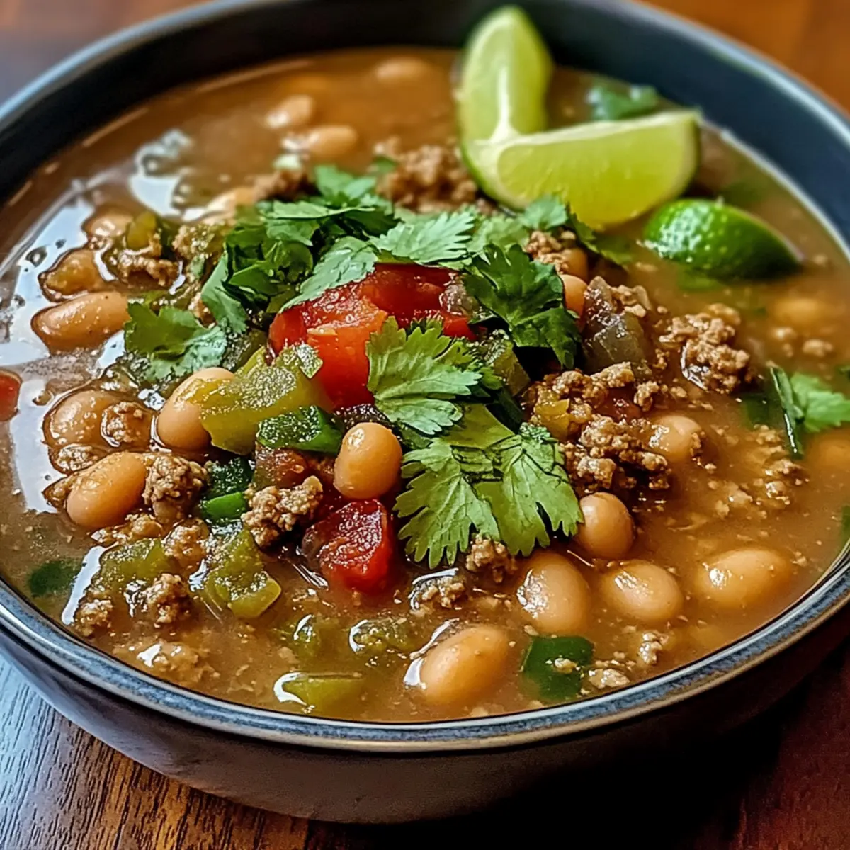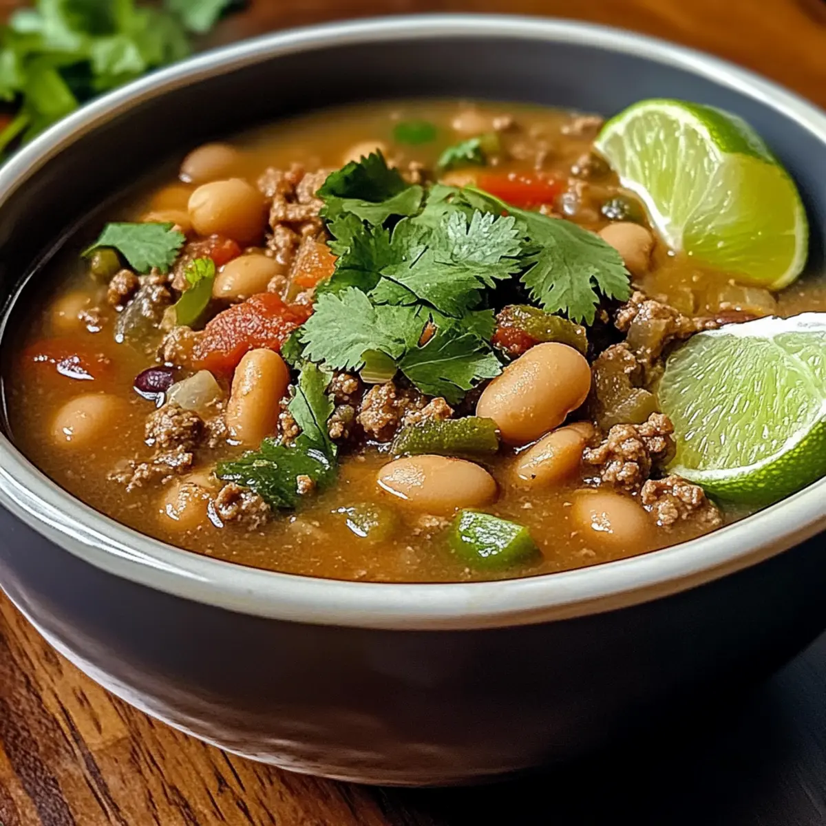 Pinto-Bohnen, grüne Chile und Rindfleischsuppe für jeden Tag