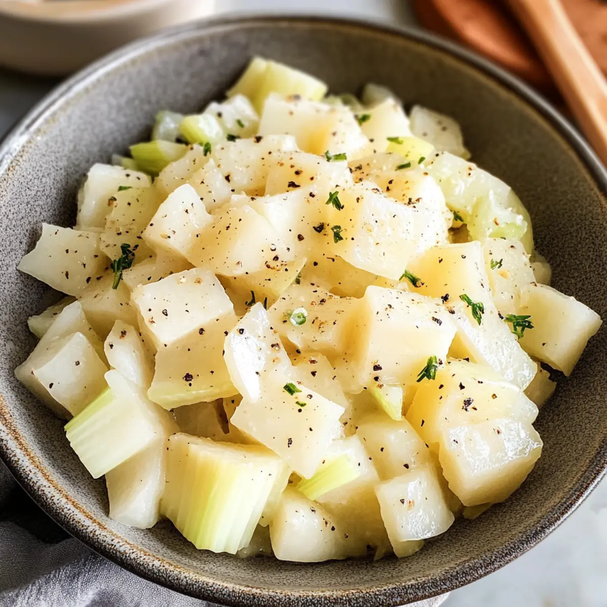 Frische Aromen: Die Kombination aus zarter Selleriewurzel und einer leichten, cremigen Soße sorgt für ein erfrischendes Geschmackserlebnis, das zu jeder Mahlzeit passt.