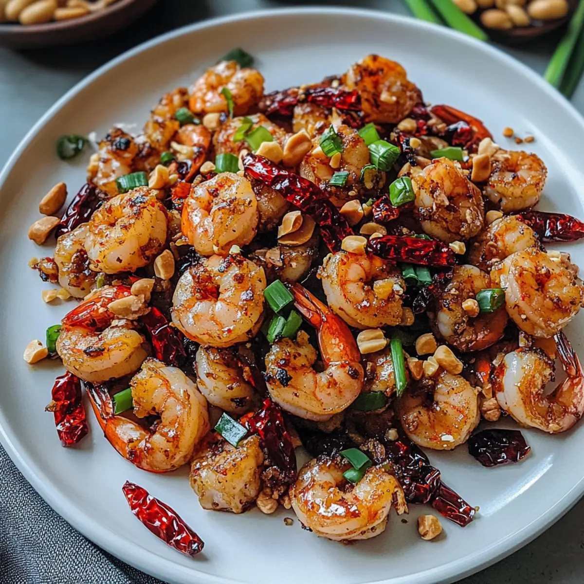 Als der Dampf aus der Pfanne aufstieg, erfüllte der würzige Duft von gebratenen Garnelen die Küche und entführte mich für einen Moment nach Sichuan. Diese Sichuan-Garnelen-Pfanne ist nicht nur eine perfekte Wahl für schnelle Wochenabende, sondern bringt auch die authentischen Aromen der asiatischen Küche direkt auf euren Tisch. Die Kombination aus knusprigen Garnelen und einer aromatischen Gewürzmischung sorgt für eine harmonische Balance aus Wärme und Geschmack. In kürzester Zeit verwandelt sich ein einfaches Abendessen in ein Hochgenuss-Erlebnis, das selbst die anspruchsvollsten Gaumen begeistert. Bereit, eure Geschmacksnerven zu verwöhnen? Lasst uns gemeinsam die Geheimnisse dieser köstlichen Pfanne entdecken!