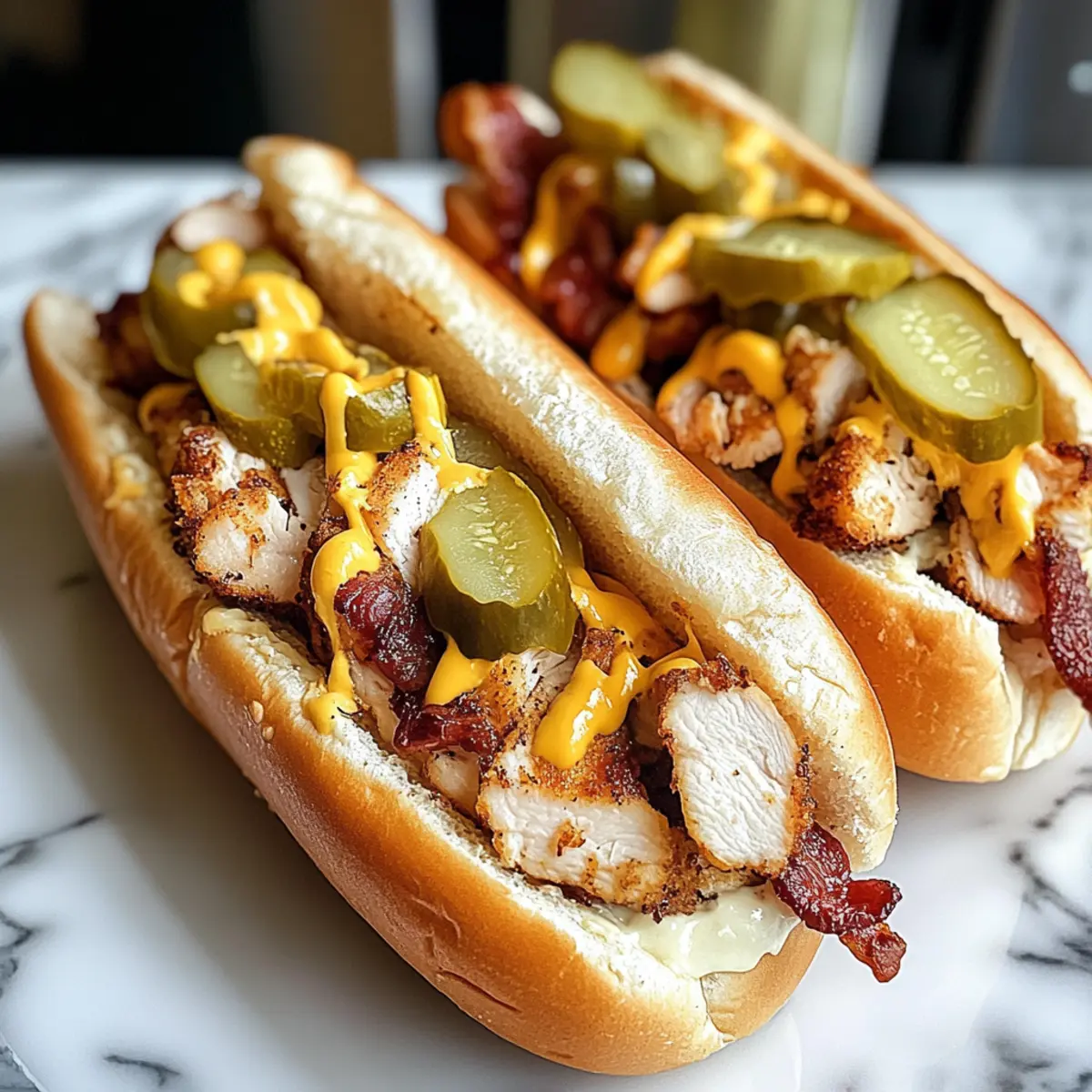 - Legen Sie die frisch gegrillten Hähnchenstücke in die gerösteten Hoagie-Brötchen.