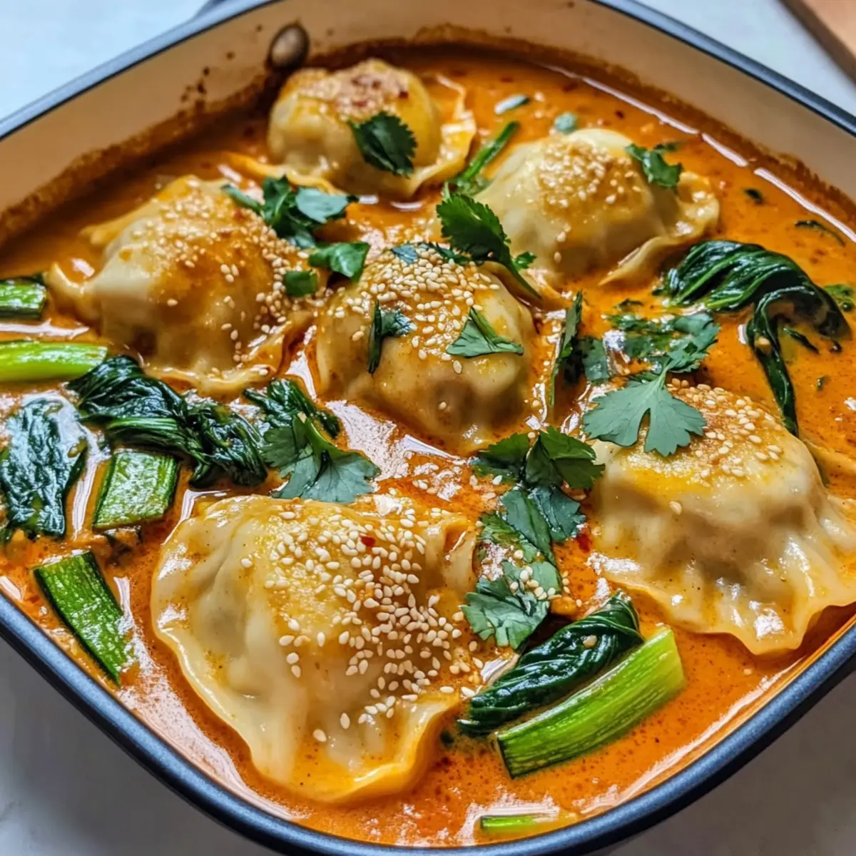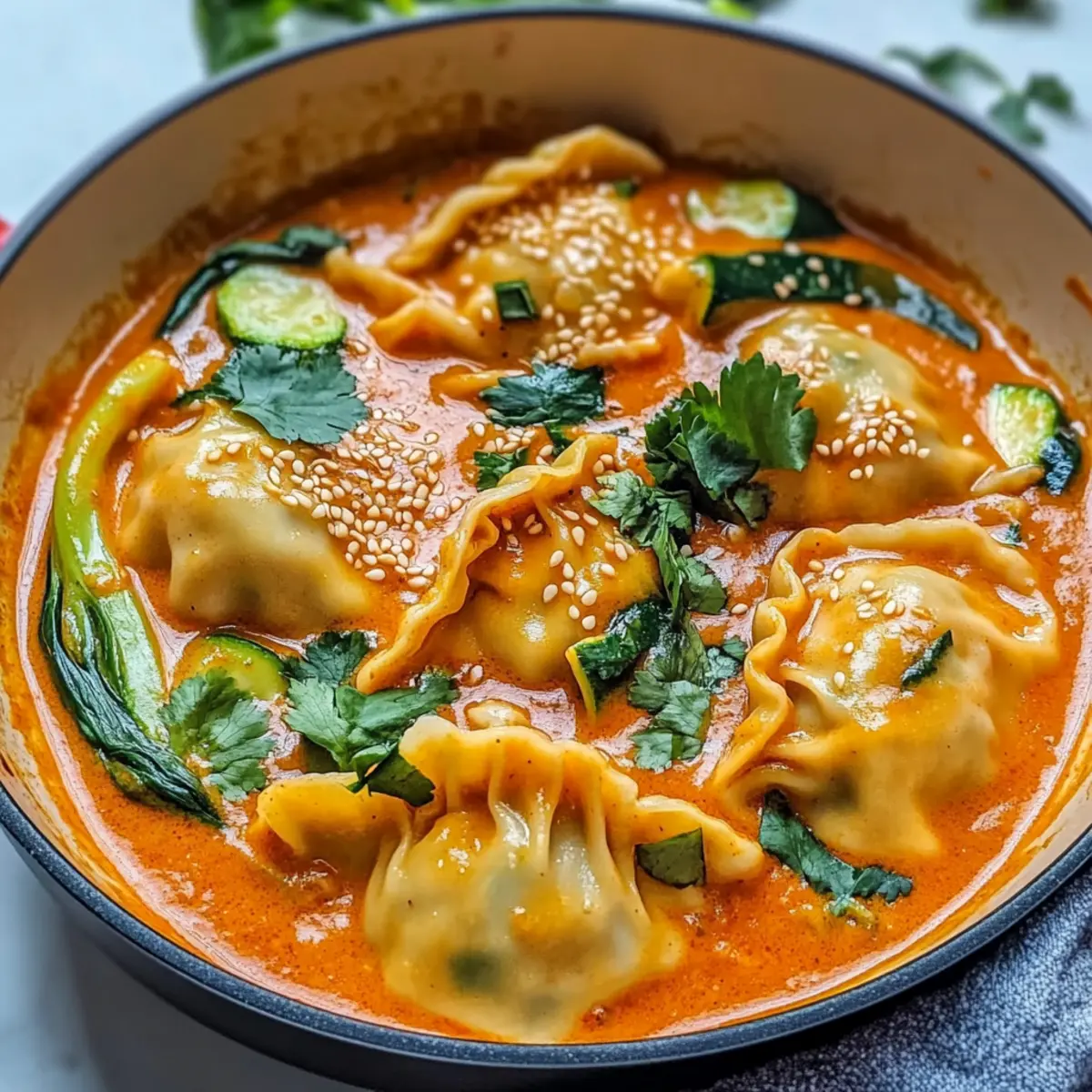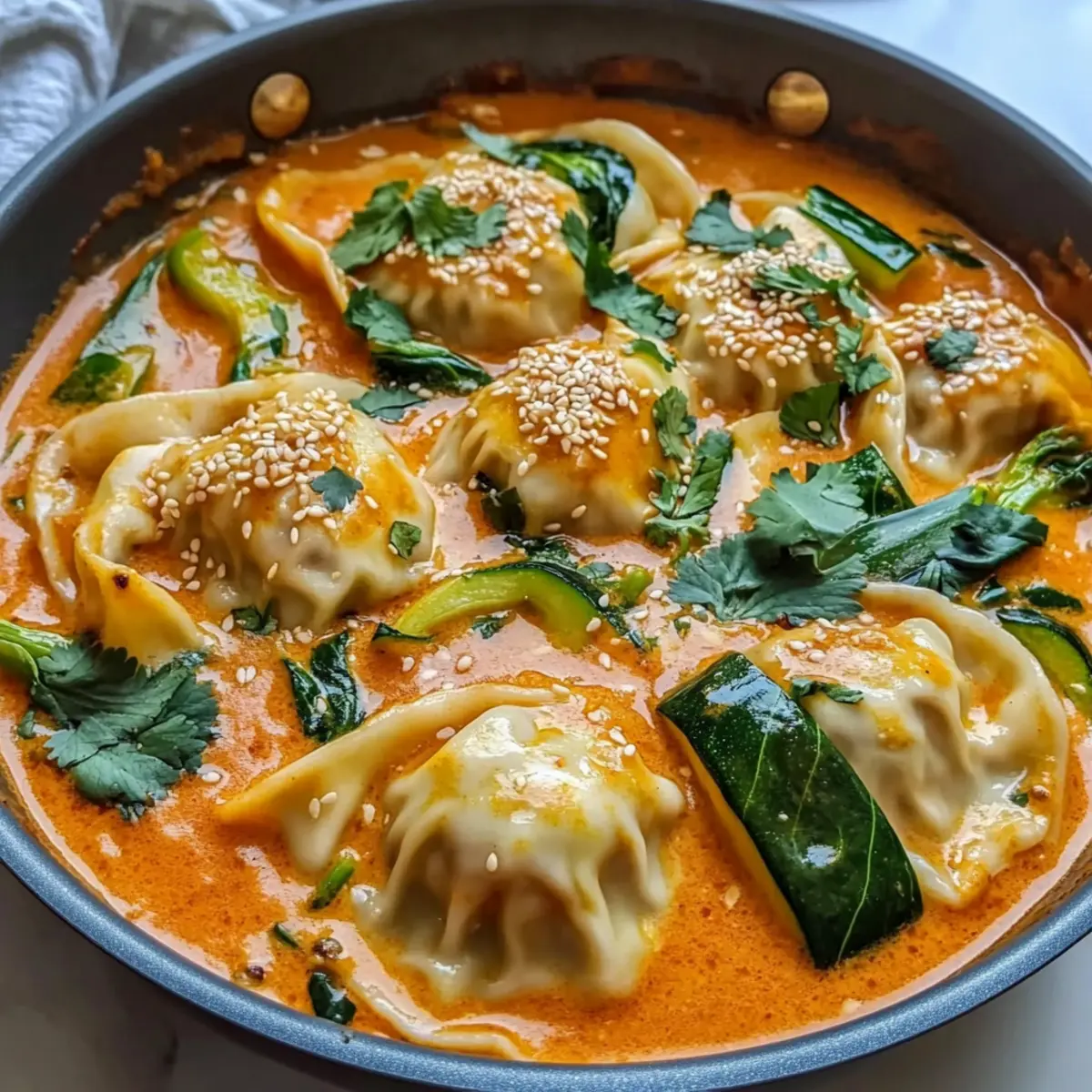 Teigtaschenauflauf in cremigem rotem Curry-Glück