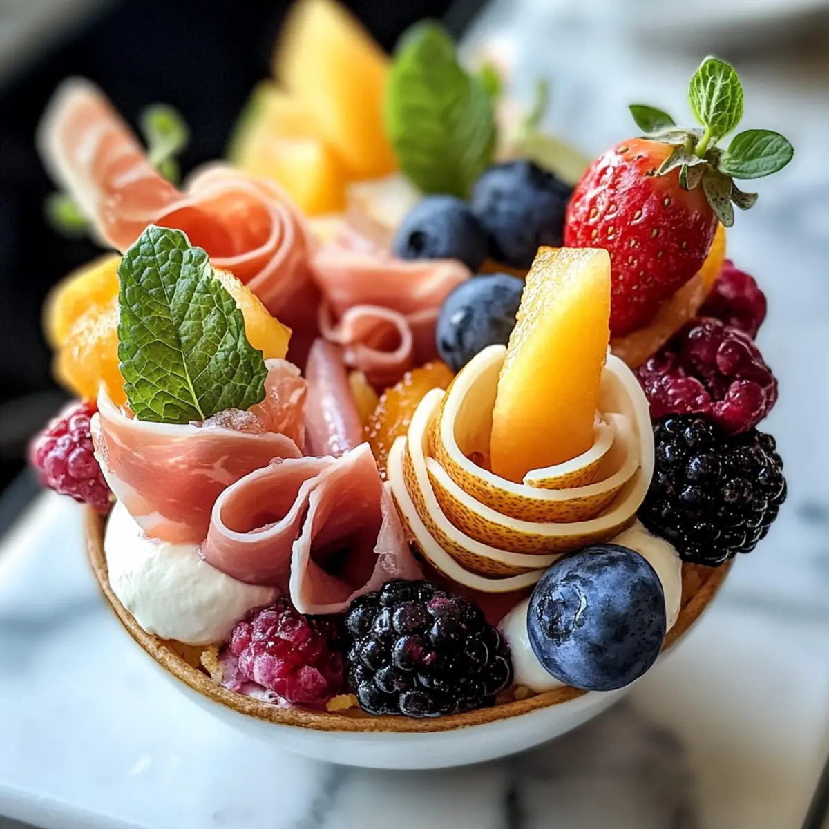 - Prosciutto – Fügt eine herzhafte Note hinzu, die wunderbar mit süßen Früchten harmoniert. Ersetze es durch Puten- oder Rindfleischscheiben für einen anderen Geschmack.