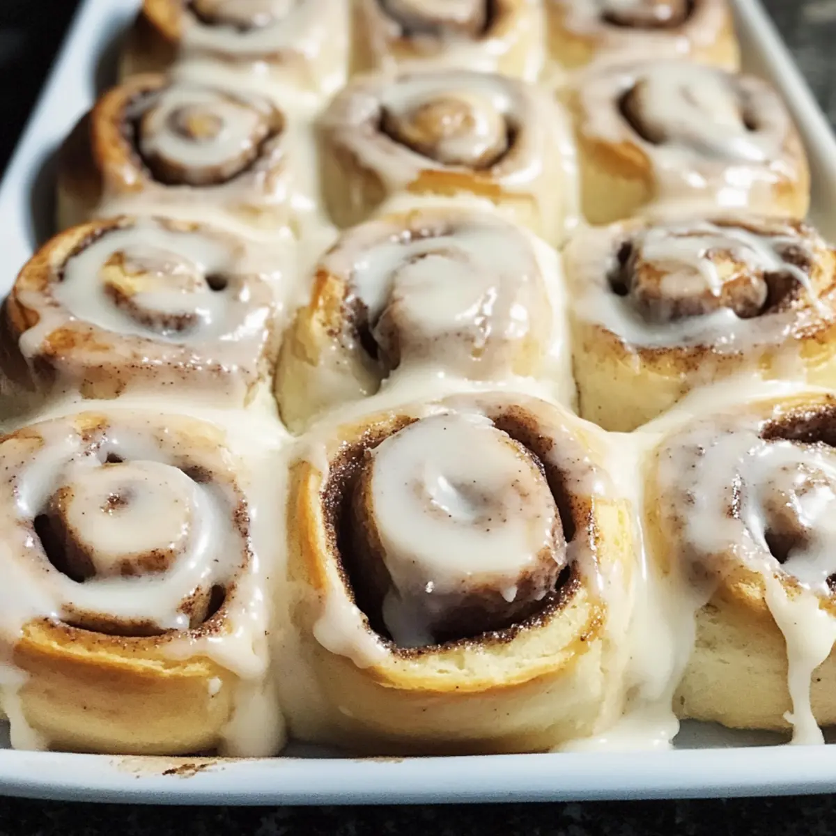 - Nach dem Abkühlen die Glasur gleichmäßig über die Zimtschnecken verteilen.