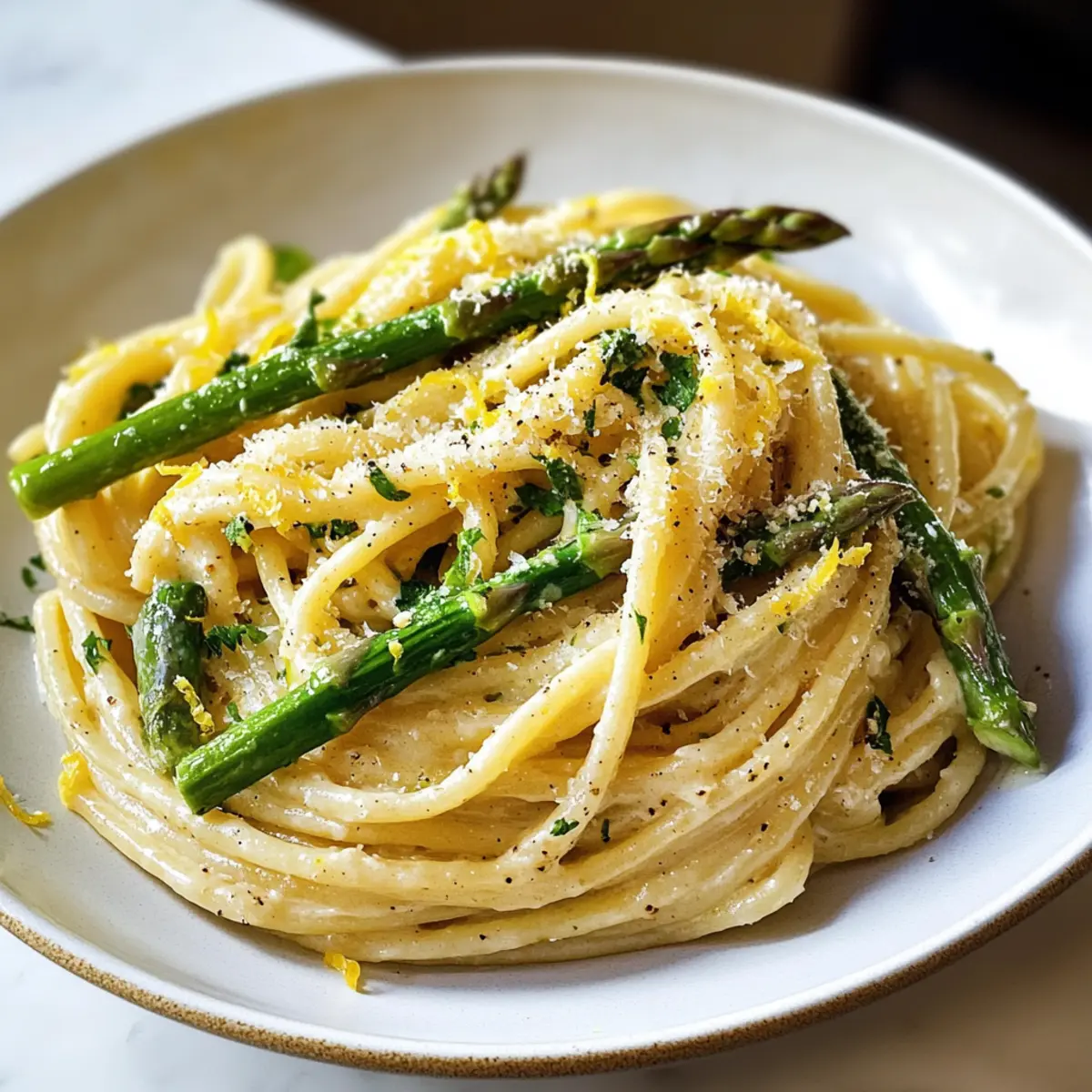Frische Aromen: Die Zitronen-Tee Spargel Pasta bringt das Beste des Frühlings auf deinen Tisch, mit zesty Zitrusnoten und knackigem Spargel, die jeden Bissen erfrischend machen.